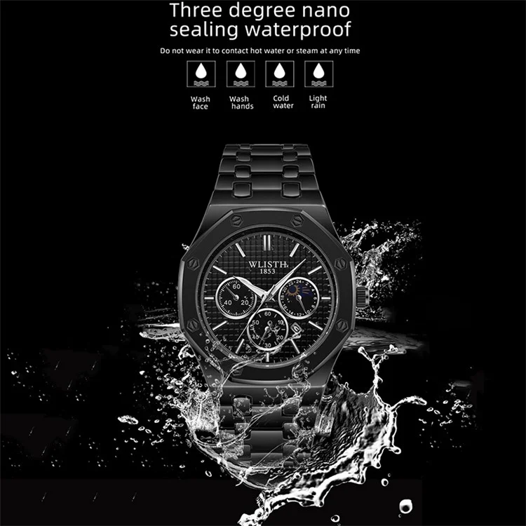 WLISTH 6149 Alloy Strap Business Quartz Watch Luminous Wrist Watch with Calendar Black Men